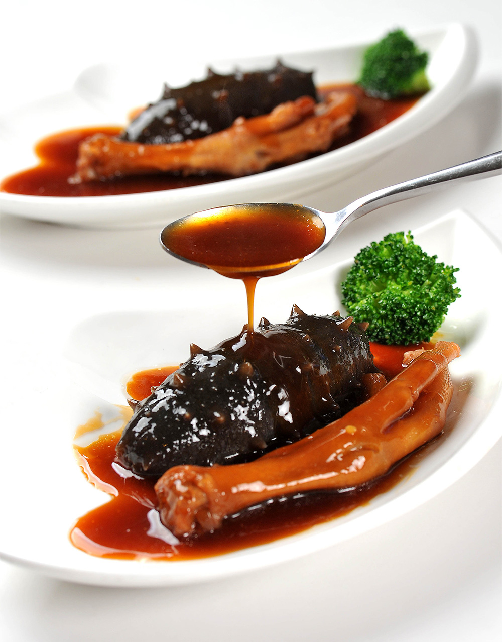 調料:鮑汁200g、鹽2g、味精3g、白鹵水200g