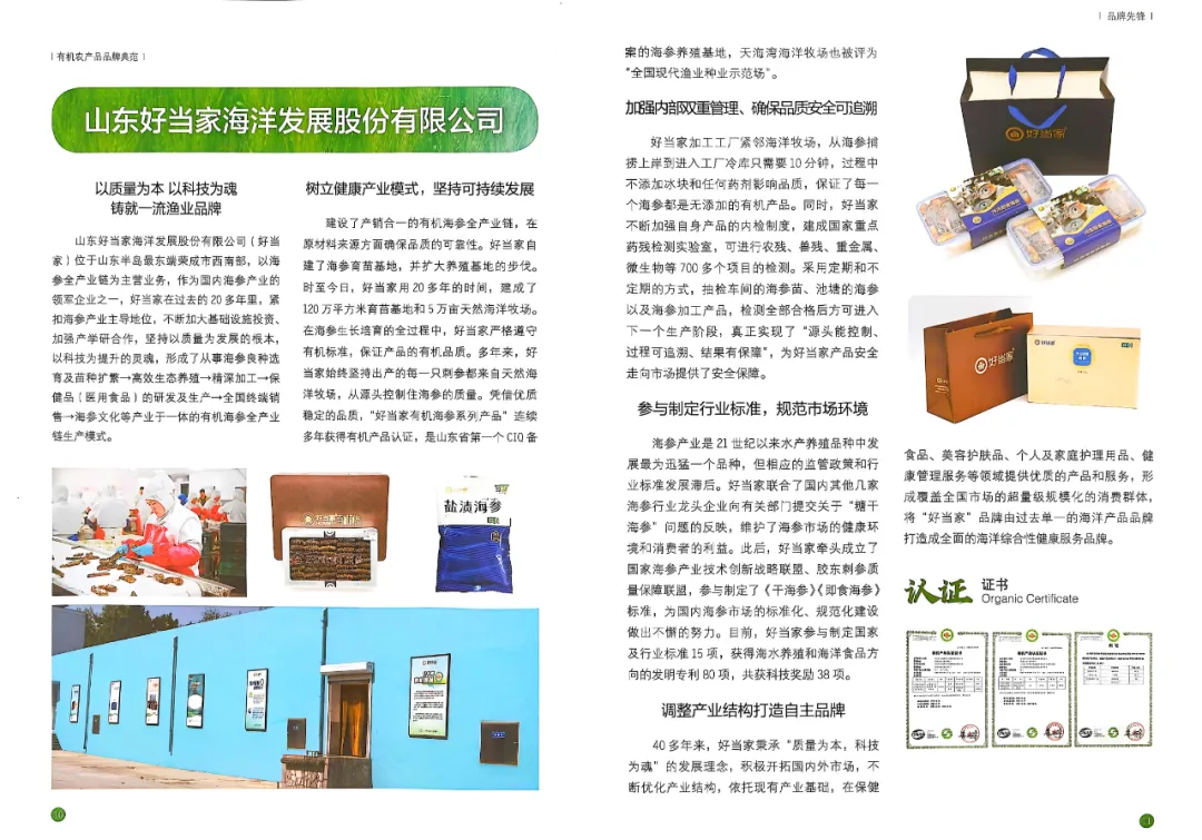 匠心有機路,好當家海參入選《有機農產品品牌典范》